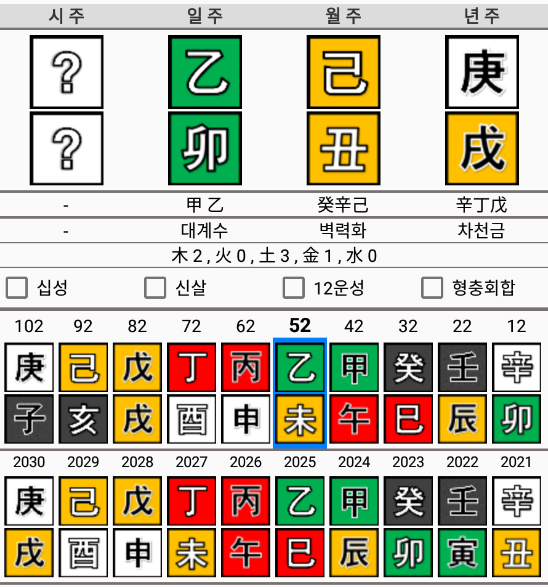 올해 52세가 되면서 을미대운으로 운의 흐름이 바뀌게 됩니다.
